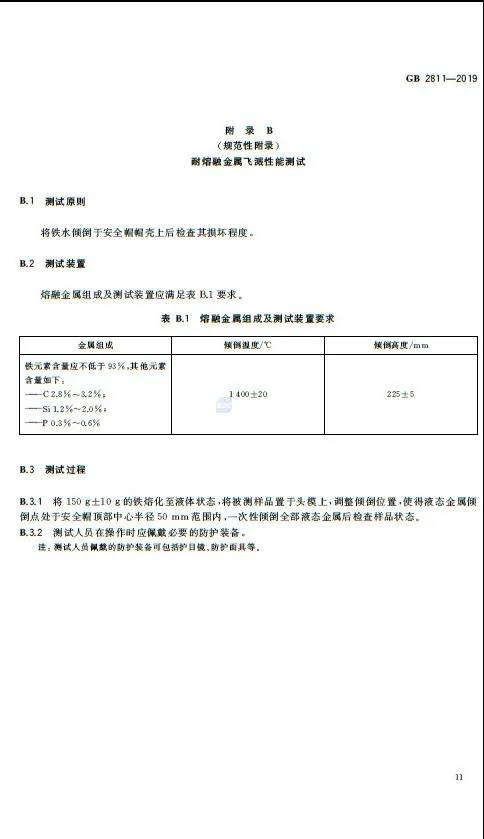 · 修改了標(biāo)準(zhǔn)適用范圍 · 修改了部分術(shù)語和定義的措辭,并刪除了部分術(shù)語 · 增加了安全帽的分類 · 修改了對(duì)于安全帽質(zhì)量的要求 · 修改了對(duì)于佩戴高度的要求 · 修改了對(duì)于通氣孔的要求 · 修改了對(duì)于耐低溫性能的要求 · 增加了對(duì)于耐極高溫性能的要求 · 修改了對(duì)于電絕緣性能的要求 · 修改了對(duì)于防靜電性能的要求 · 增加了對(duì)于耐熔融金屬飛濺性能的要求 · 修改了對(duì)于安全帽永久標(biāo)識(shí)的要求 新版的GB2811-2019規(guī)定,在安全帽內(nèi)側(cè),全生命周期內(nèi)必須清晰保持以下6項(xiàng)標(biāo)識(shí): a)本標(biāo)準(zhǔn)編號(hào); b)制造廠名; c)生產(chǎn)日期(年、月); d)產(chǎn)品名稱(由生產(chǎn)廠命名); e)產(chǎn)品的分類標(biāo)記; f)產(chǎn)品的強(qiáng)制報(bào)廢期限。 原文如下: