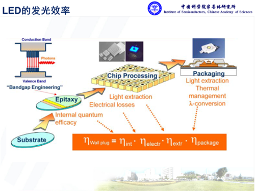 氮化鎵是直接帶隙的半導體材料,在光電應用方面具有獨特優(yōu)勢?;诘壍腍B-LED對于通用照明來說,其核心問題是發(fā)光效率。其中外量子效率主要取決于三個層面的因素,內量子效率、光提取效率,還有封裝方面的熒光轉化等效率,而且每個環(huán)節(jié)都息息相關。
