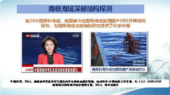 在南極地區(qū),我國(guó)有二處陸上地震臺(tái)站。在第28次南極科考時(shí)投放了海底地震儀,過了一年,在第29次南極科考船去那片海域回收時(shí),因那片海域結(jié)冰,沒法回收。根據(jù)設(shè)計(jì),海底地震儀最大留海時(shí)間為一年,大家都擔(dān)心失掉這兩臺(tái)儀器了??上驳氖牵诌^了一年那片海域已經(jīng)沒有冰了,在回收時(shí),海底地震儀竟然浮到海面,這是在海底記錄時(shí)間最長(zhǎng)的一次試驗(yàn)。也為南極海域深部結(jié)構(gòu)研究提供了科學(xué)依據(jù)。