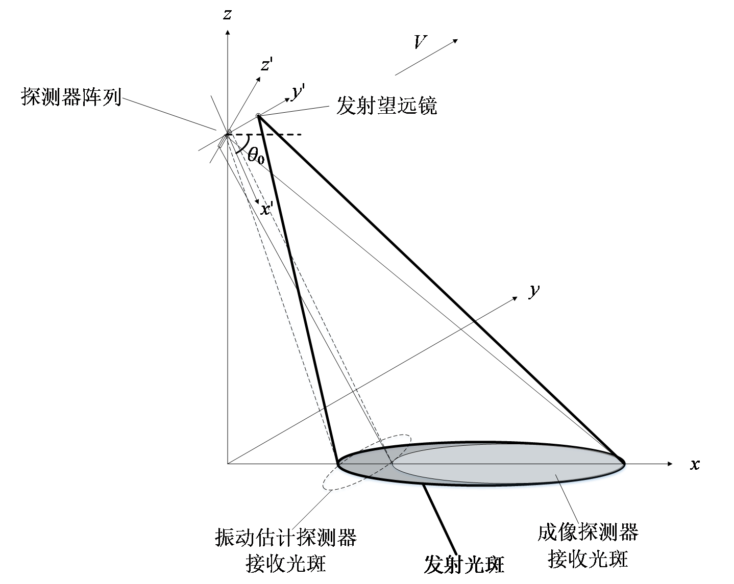 與傳統(tǒng)光學(xué)系統(tǒng)圖像概念不同,SAL獲取的圖像在斜距-多普勒頻率兩維。需要寬的接收視場,但不要求具有高的空間角分辨率,具備采用一個或少量光電探測器實現(xiàn)激光雷達寬視場接收的使用條件,在原理上可用“非成像光學(xué)系統(tǒng)”。據(jù)此特點,SAL應(yīng)可通過偏置探測器在“離焦”狀態(tài)形成重疊視場,以進行振動相位誤差估計,也應(yīng)可通過“散焦”擴大瞬時觀測范圍。