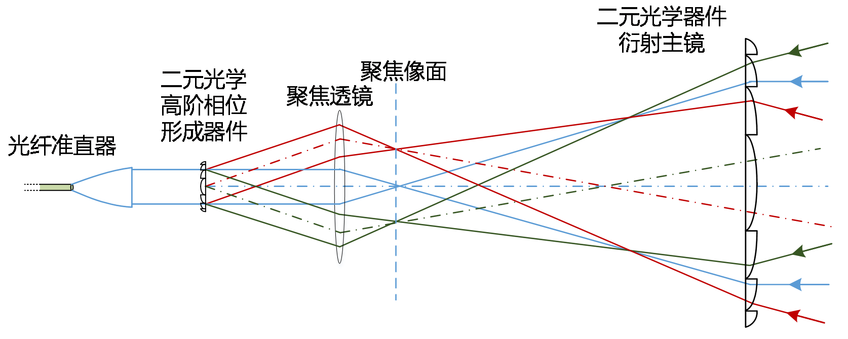 一個在壓縮光路中饋源和主鏡兩處使用二元光學(xué)器件的機載SAL衍射光學(xué)系統(tǒng)如圖4所示。